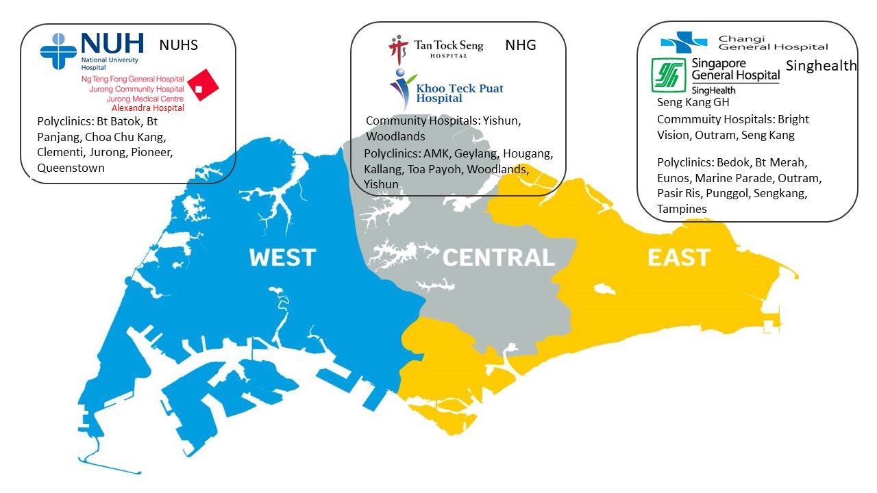 Singapore Healthcare clusters was consolidated from 6 to 3 in 2018. Today in 2023, Singapore had built many more healthcare facilities to cater to the ageing society of Singapore